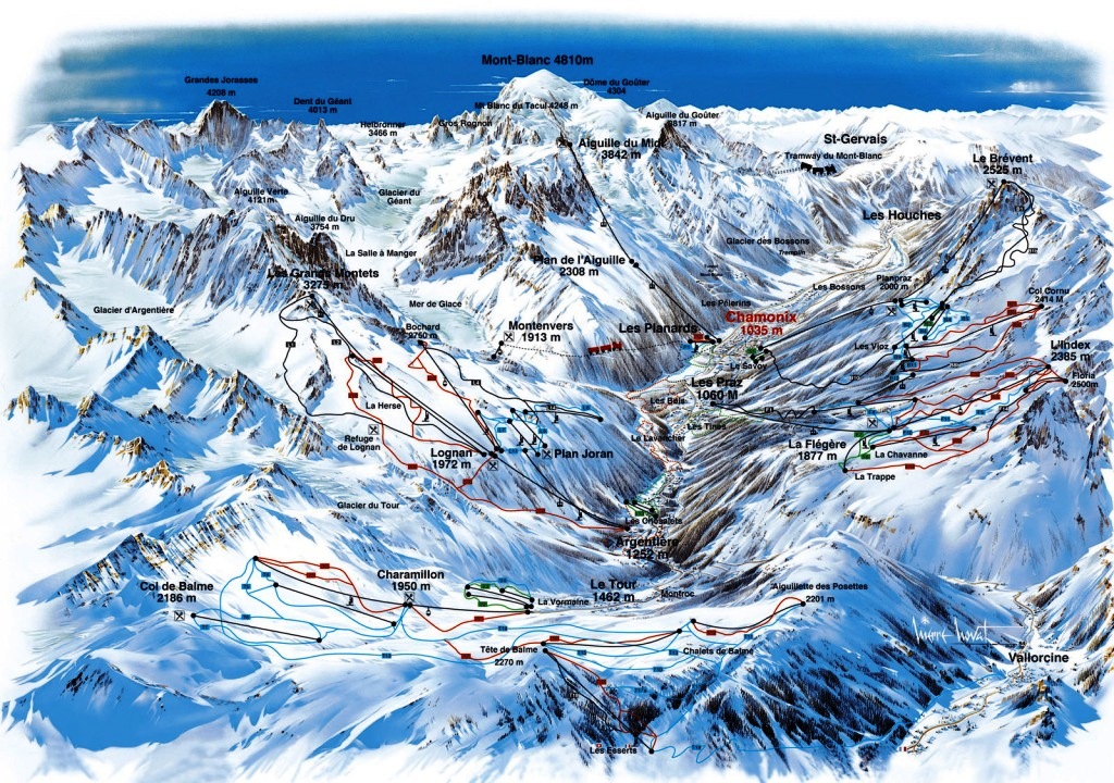 Со времен первых Зимних Олимпийских Игp 1924 года история горных лыж неразрывно связана с Шамони не только из-за величия Мон-Блана — высочайшей вершины Западной Европы, но и из-за уникального разнообразия и качества возможностей, которые дает эта долина. Долина Шамони, протянувшаяся на 16 км., окружена великолепными склонами северной и южной экспозиции, которые гарантируют идеальное состояние снега в любое время зимнего сезона. Хотя курорт расположен на высоте 1000 м над уровнем моря, 90% всех лыжных трасс находится выше 2000 м., поэтому Вы можете не беспокоиться о снеге — он есть всегда!